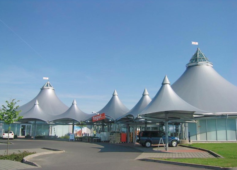 PTFE膜材是在超細玻璃纖維織物上,涂以聚四氟乙烯樹(shù)脂而成的材料。PTFE膜材最大的特點(diǎn)就是耐久性、防火性與防污性能好。