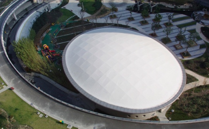 由于保溫內襯材料具有保溫、透光等性能,所以具有節能、生態(tài)、環(huán)保優(yōu)越性,擺脫傳統材料大大降低了二次污染,而且由于采用新技術(shù)在現場(chǎng)只是張拉就位,施工速度很快,使施工現場(chǎng)也很環(huán)保。保證了建筑的景觀(guān)效果,以及膜結構的自然性又很體現區域建筑文化。